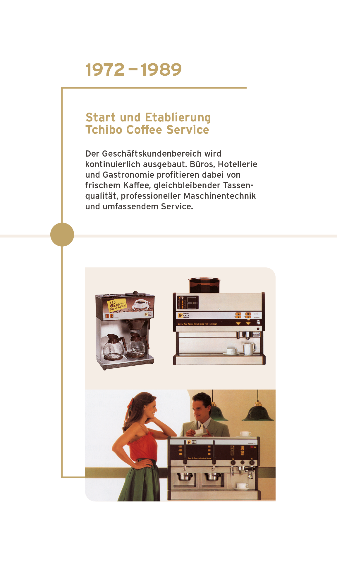 Ein Tag ohne perfekten Kaffeegenuss? Ist für uns als Tchibo Coffee Service und für unsere B2B-Kunden undenkbar. Daher machen wir es uns seit mehr als 50 Jahren zur Aufgabe, den Alltag unserer Kundinnen und Kunden mit perfekten Kaffeelösungen und umfassendem Service zu begleiten.